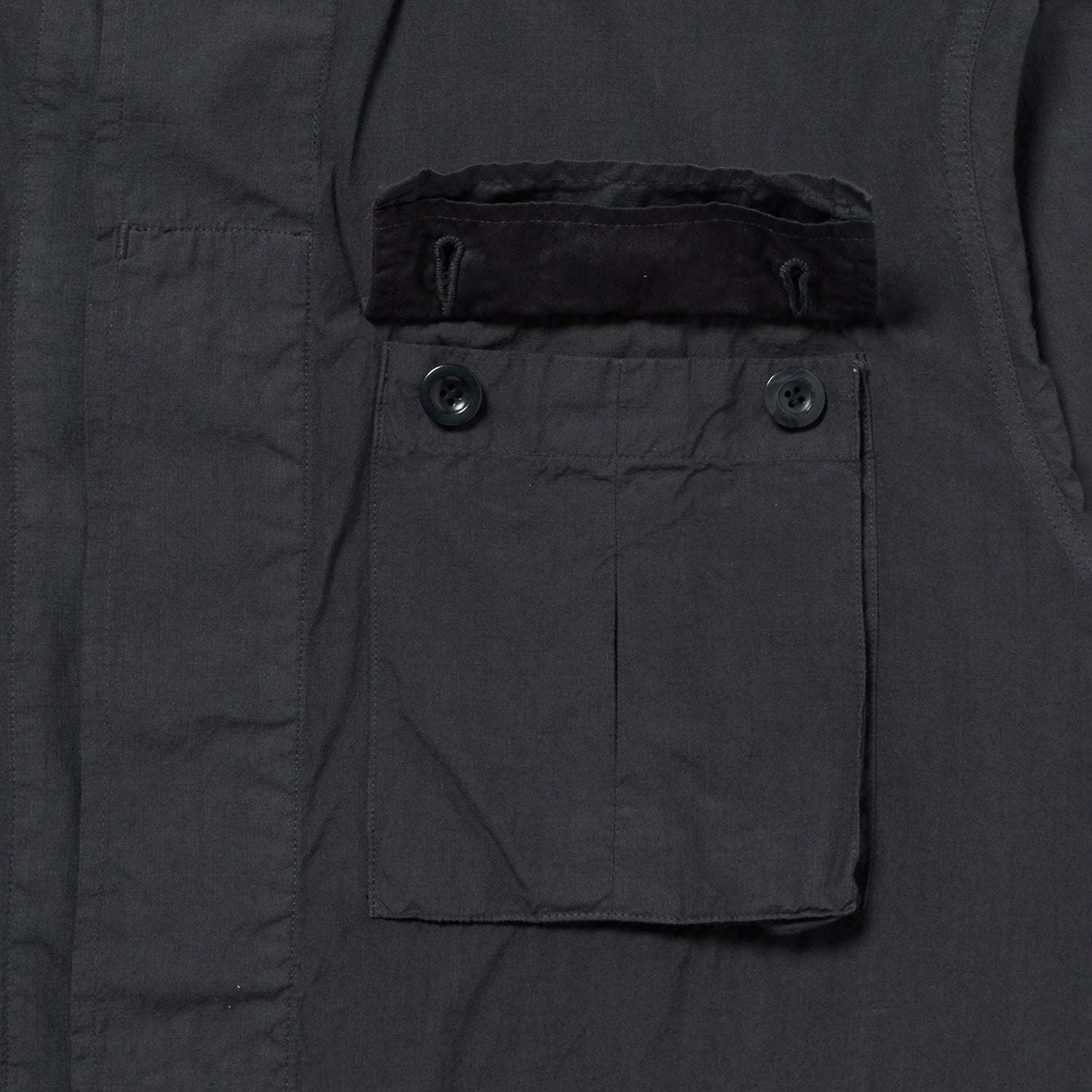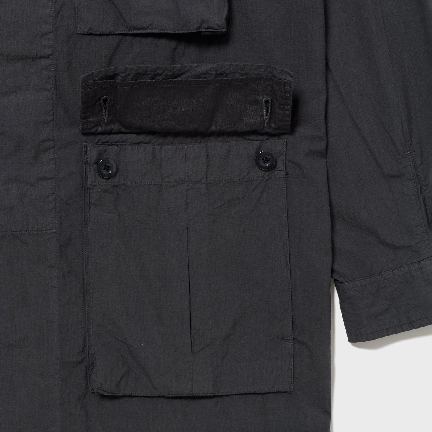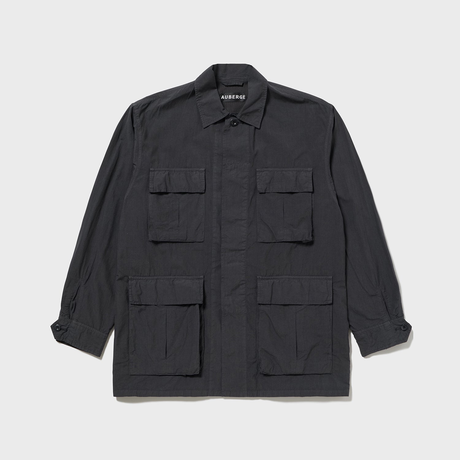 当初のイメージでは、ベトナム戦争期のジャングルファティーグがマッチすると考えましたが、輩感が強めに出るため、今回はカラー・デザインともに少しナイーブなシャツ生地で作ったライトミリタリーを目指し、80年代の海兵隊4パッチJKに仕立てました。