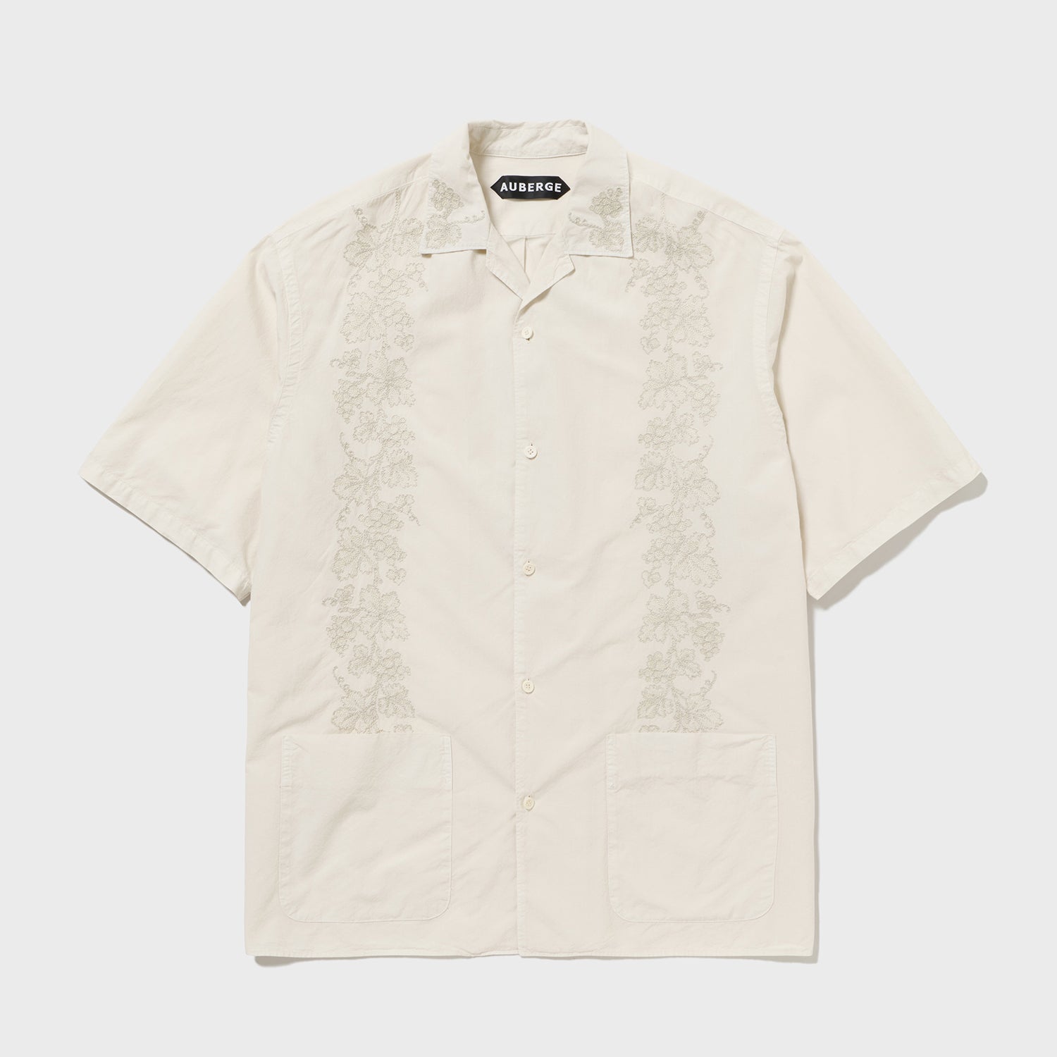 開襟、アウトパッチポケットデザインで、AUBERGE版キューバシャツを企画いたしました。