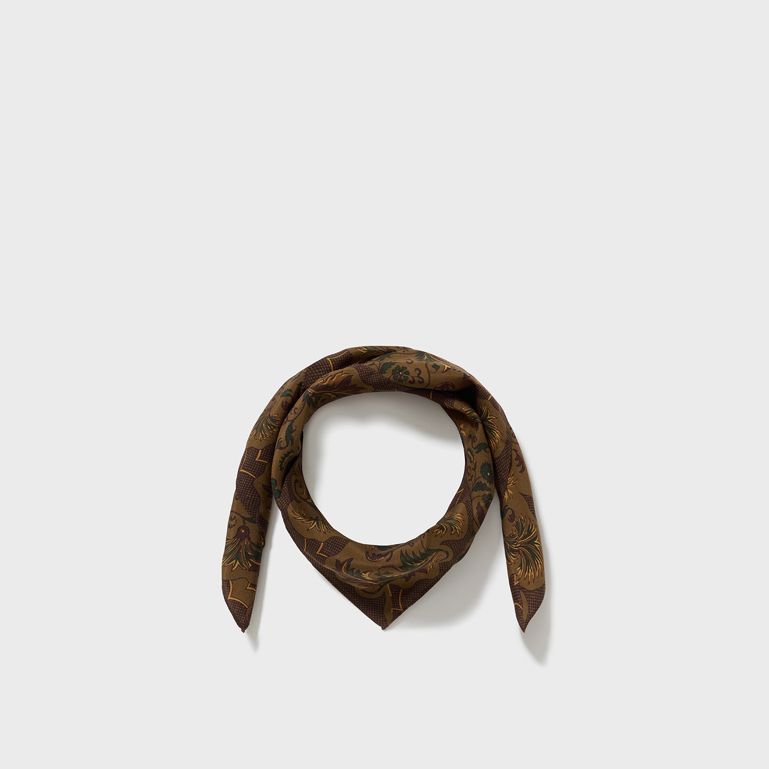 The pattern is the same as KEVIN's, and is a reproduction of a scarf called FICHU, made in northern France 200 years ago, at a superb printing factory in Kyoto. The motif is thistle flowers and leaves, a standard at the time. Paisley, an exotic pattern like small flowers, was brought to Europe from India in the 17th century by the East India Company, and later led to the American bandana. This is a reproduction of the French textile that is its origin.