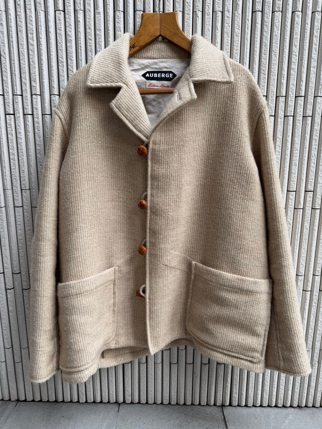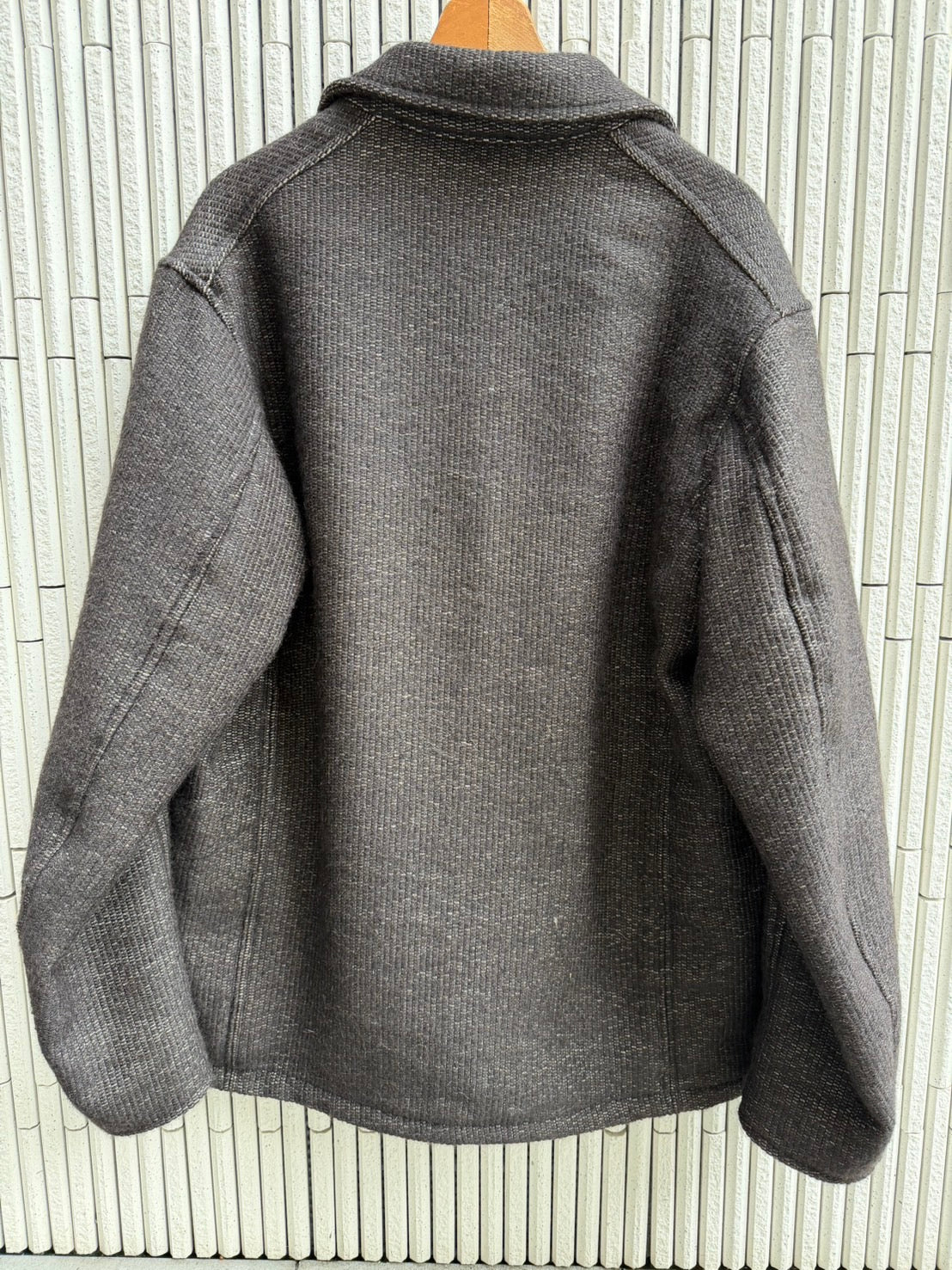 今期、誰が言い出したかは定かではありませんが、オルテガ、チマヨJK、ベストがトレンドだそうで、それならば渾身のモヘア&ブラックアルパカでネイティブイメージのオリジナルテキスタイルを作りました。しかし、このチマヨ、オルテガJKのビンテージはとてつもなく着にくい。そもそもファッションや型紙状の着やすさなど無縁のお土産工芸品なので、今回は全くオリジナルに学ばず現世代的なサイズバランスを保つオルテガフィールのJKに仕上げました。落ちる肩幅、高すぎない袖山がポイント。一部ポケットにはUKワークのディテールを盛り込みました。