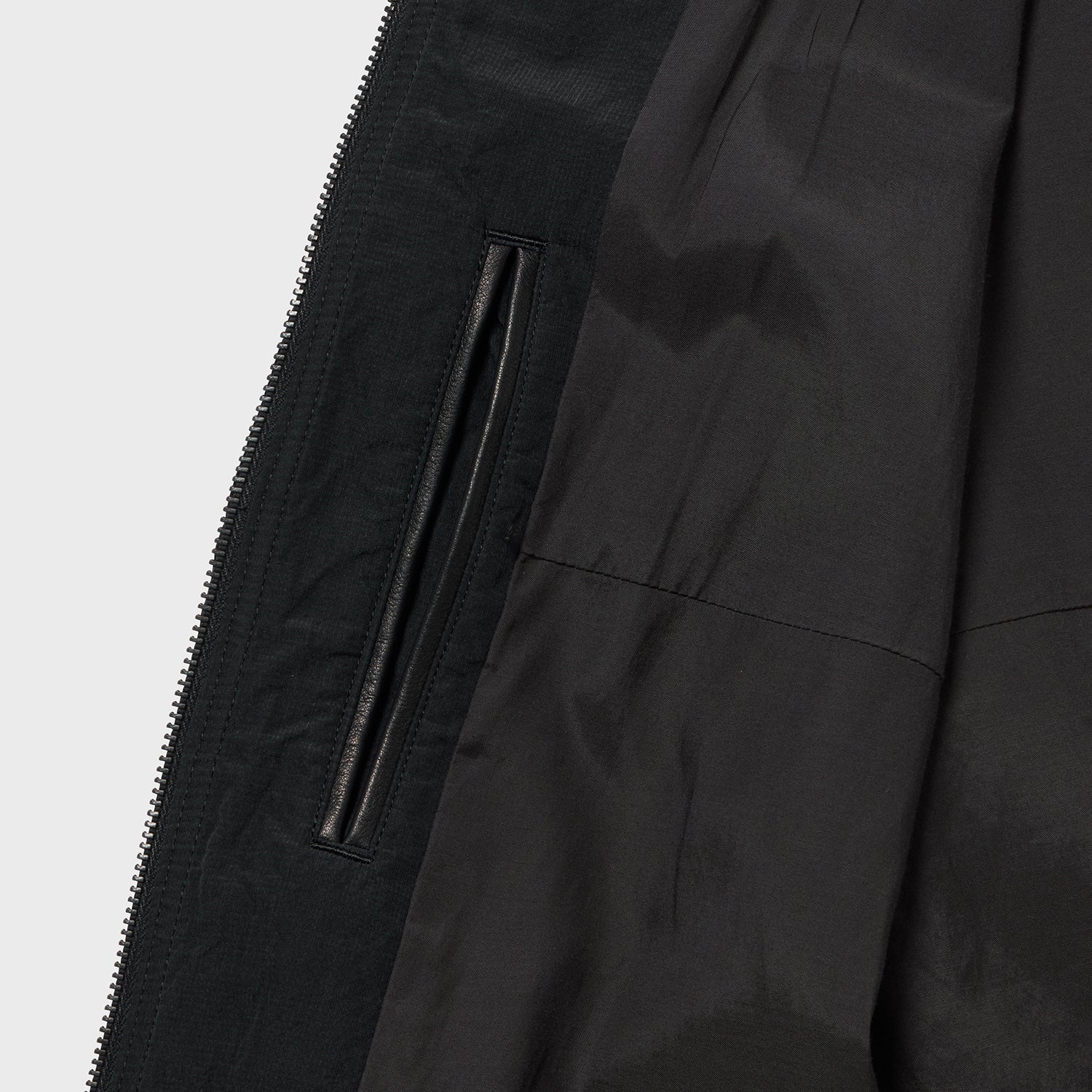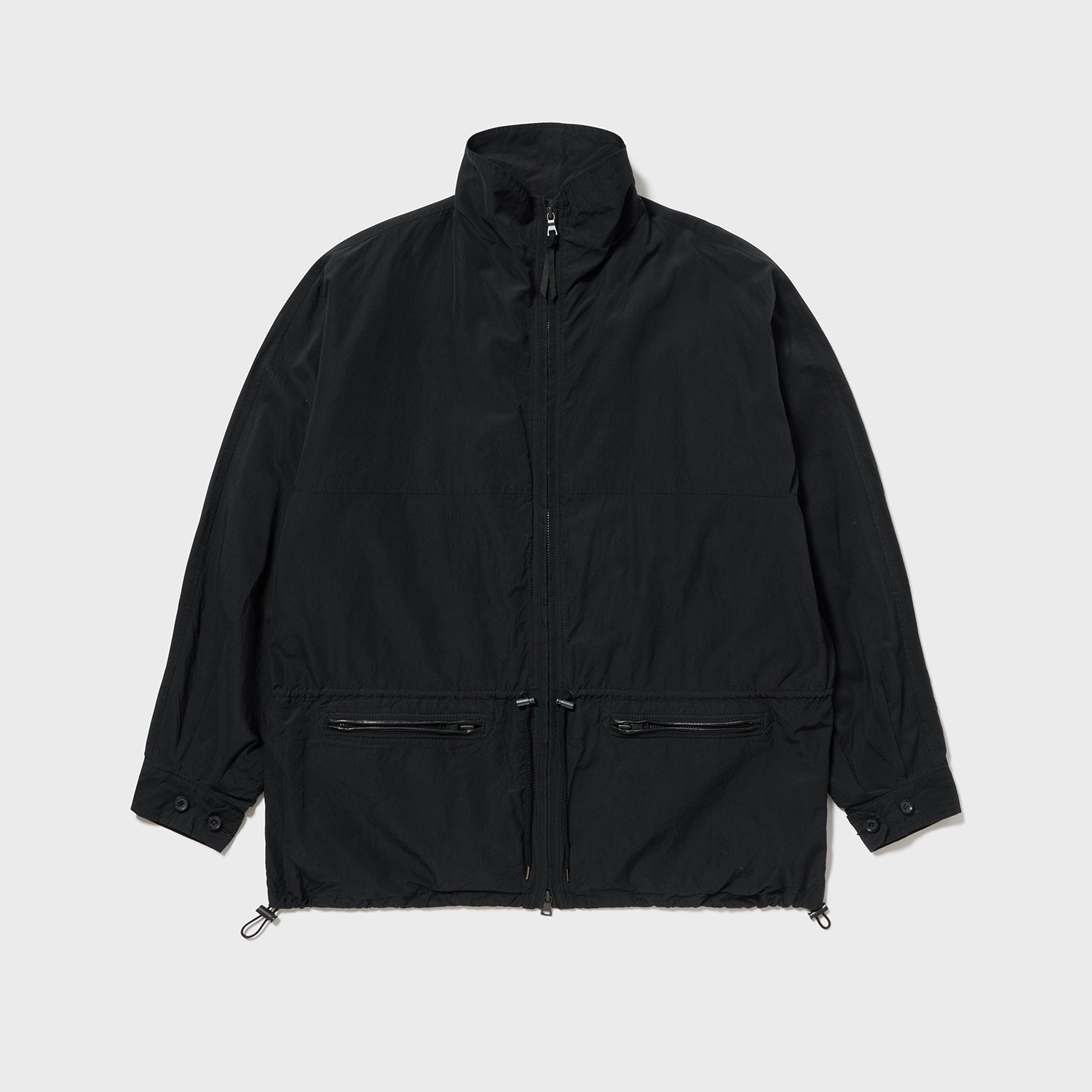 オールドプラダやストーンアイランド、C.P.カンパニーあたりの雰囲気を、化繊に見立てたシルクでドライに表現しました。